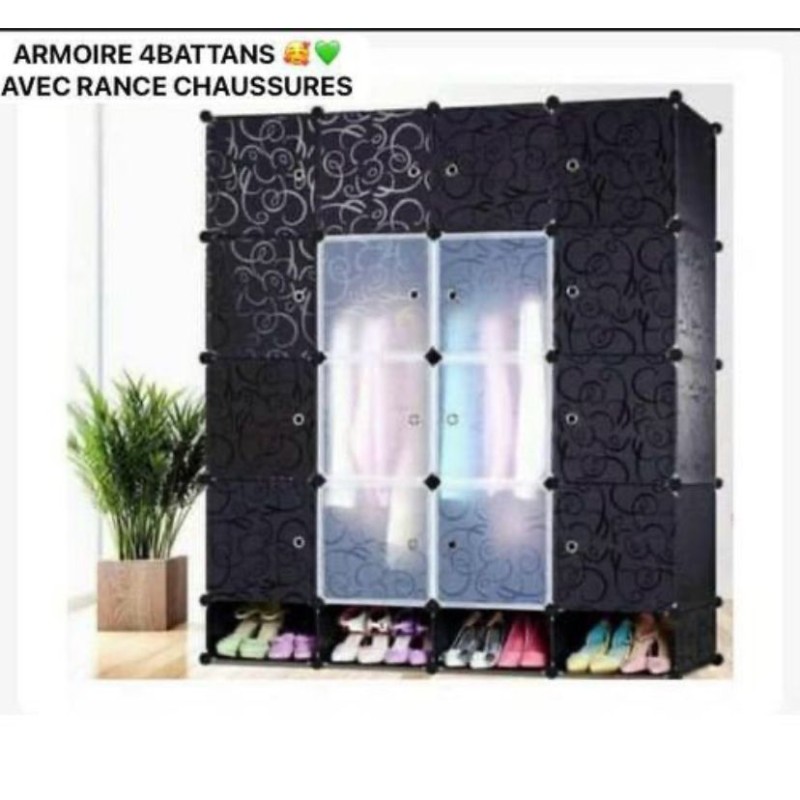 .Armoire Plastique 4 Battants Avec Double Range Chaussures.