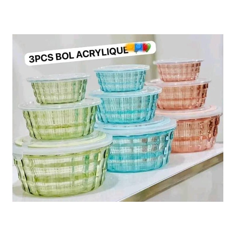 Ensemble bol plastique 3pièces de stockage des aliments et autres