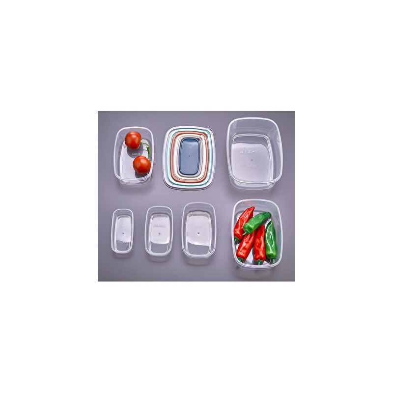 Récipient d'stockage de nourriture composé de 7piéces en plastique transparent et facile de garder des aliments au frigo comme au frais.