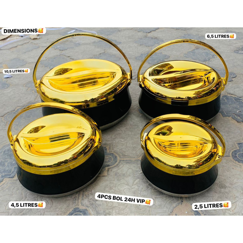 ENSEMBLE 4 BOLS 24HEURES INOX ( 2.5L, 4.5L, 6.5L ET 10.5L)