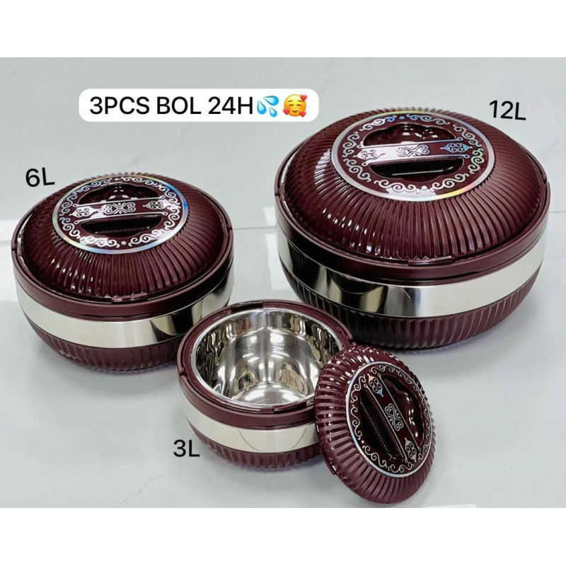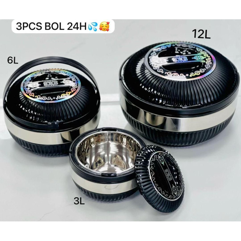 ENSEMBLE 3 PIÈCES AVEC DE 24HEURES AVEC 2 POIGNÉES (3L, 6L, ET 12L)