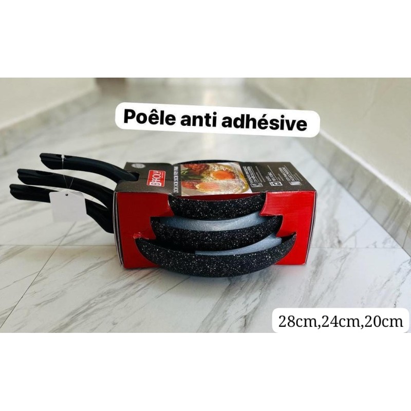 3pièces Poêles antiadhérentes 20cm - 24cm et 28cm