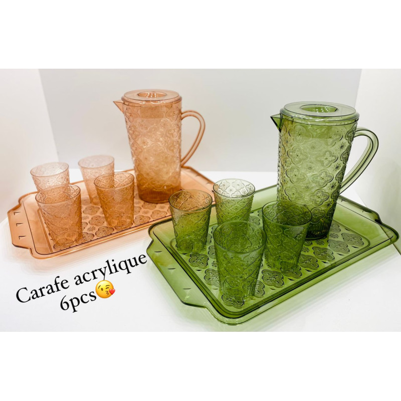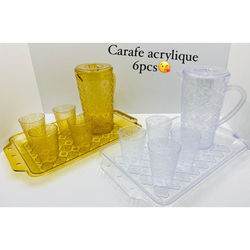 Ensemble de 7pièces Carafe avec 6tasses en verre à eau, boisson, jus etc
