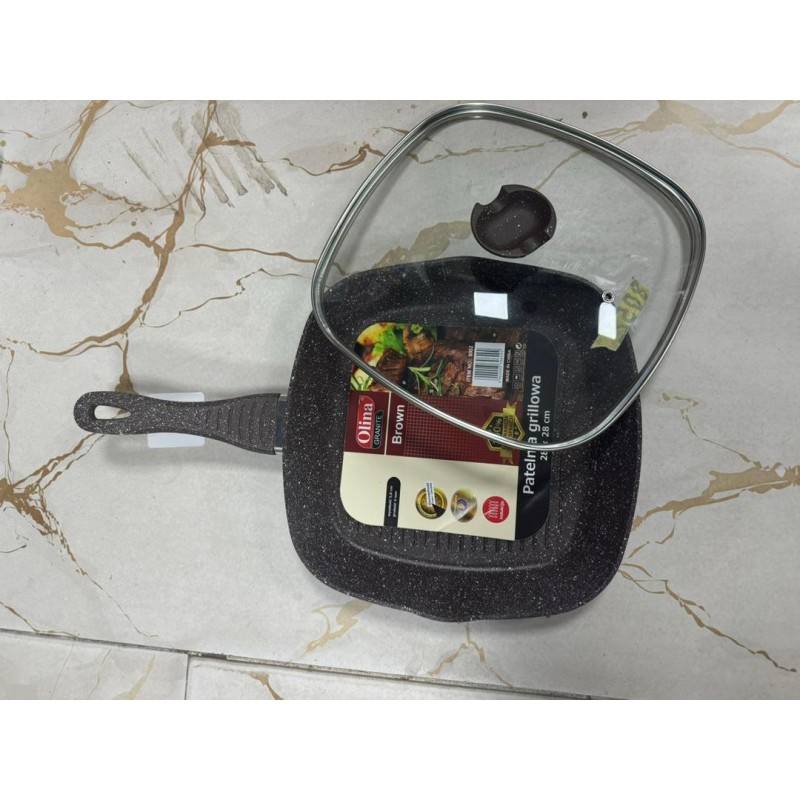 Poêle à Grille Anti-adhésif - 24CM avec couvercle et poignée anti-brûlure