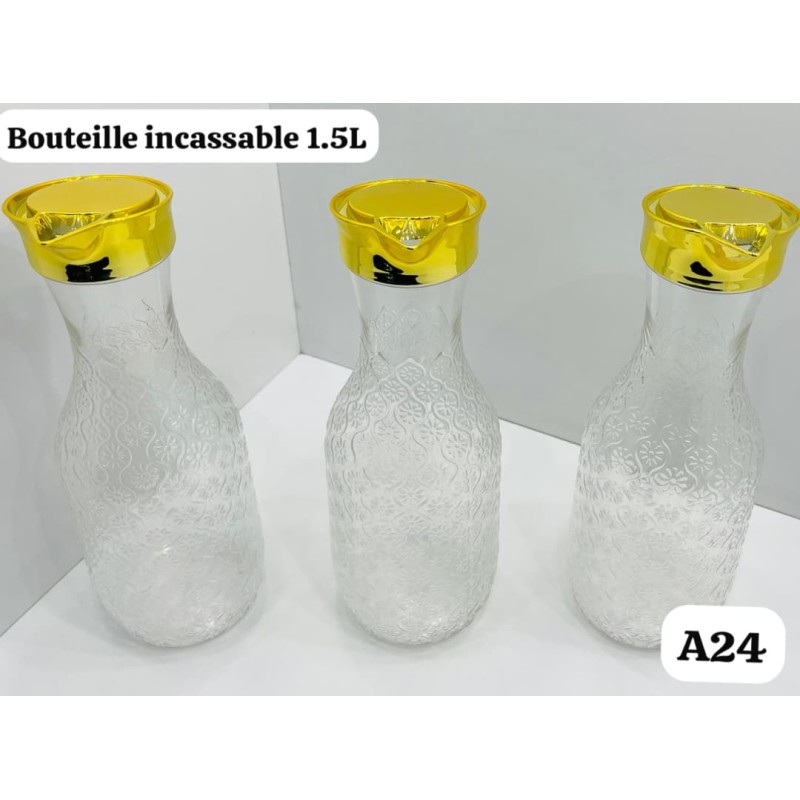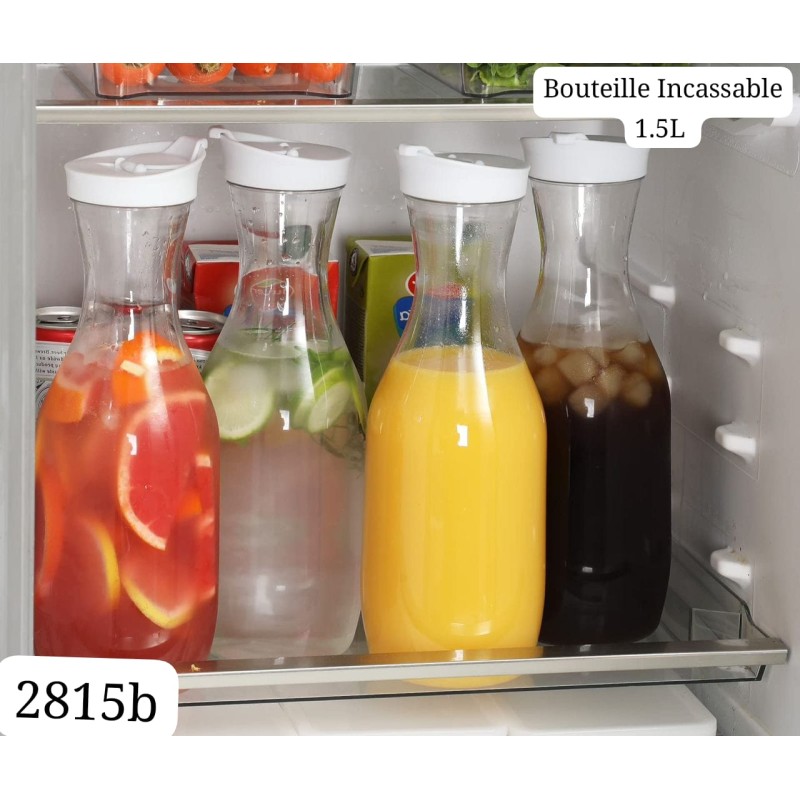 Bouteille d'eau, de jus transparente incassable - 1.5L