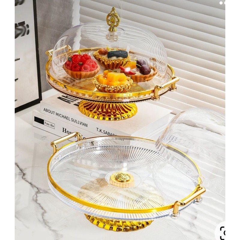 PLATEAU À GÂTEAU DE STYLE OCCIDENTAL COUVERCLE EN VERRE TRANSPARENT