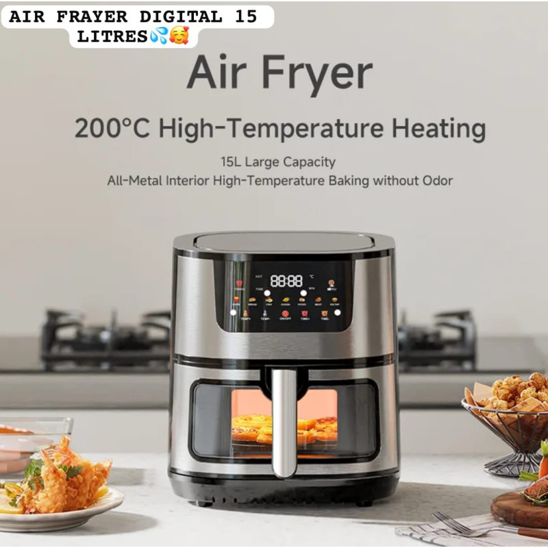 Friteuse à air numérique sans huile ni fumée facile à utiliser, capacité 15Litres