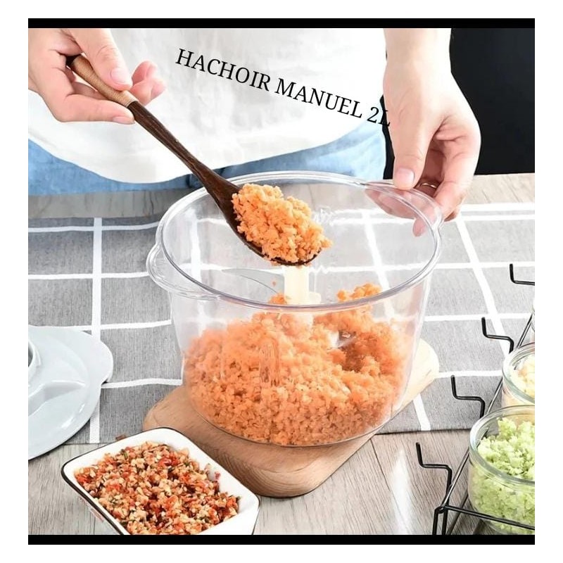 Hachoir manuel d'une capacité de 2L, facile à utiliser et très efficace pour couper toute sorte d'aliment.