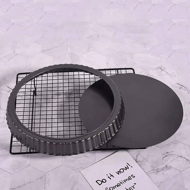 Moule à tarte en forme de chrysanthème à fond vivant de 25 cm - Bord ondulé - Rond en acier au carbone - Antiadhésif - Moule à pizza pour pâtisserie familiale.