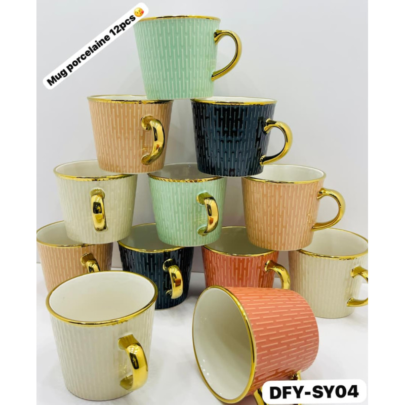 12piéces tasses en porcelaine multicolore