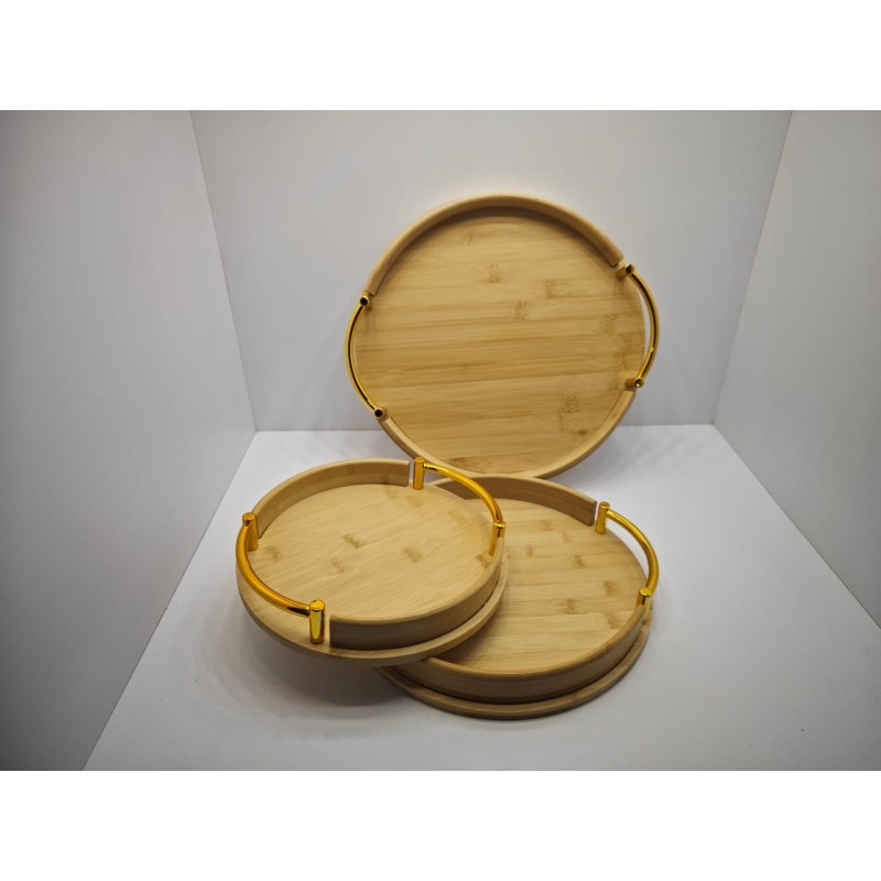 Lot De 3 Plateaux De Service Et Faits Main Bois Couleur Claire Et Décor Bambou Avec Poignées Et Surface Antidérapante – Idéal Pour Servir Assiette.