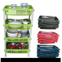 Chariot à roulettes de rangement à 4 niveaux de stockage étagère en métal transparent
