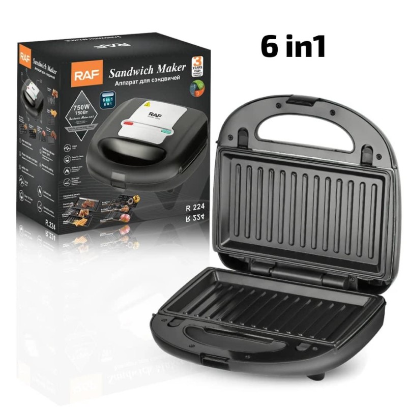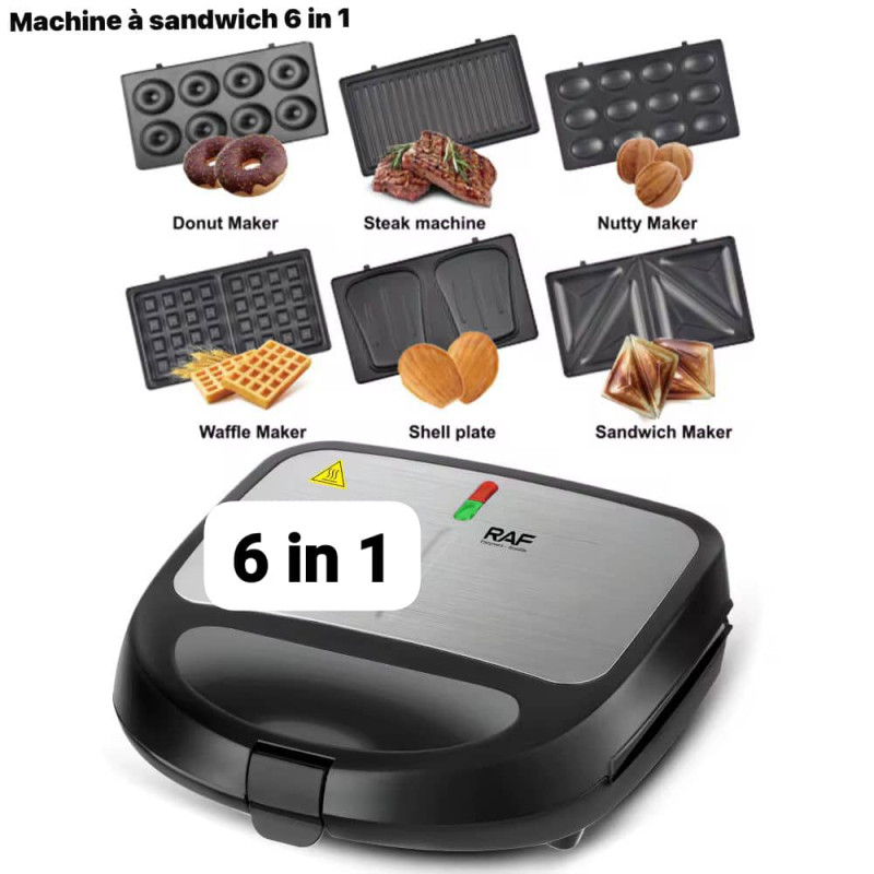 Machine À Sandwich 6 en 1 Gaufrier, Grill Plaques Amovibles Anti-adhésives