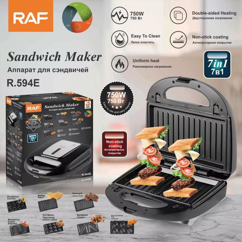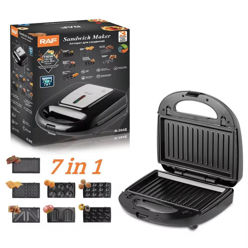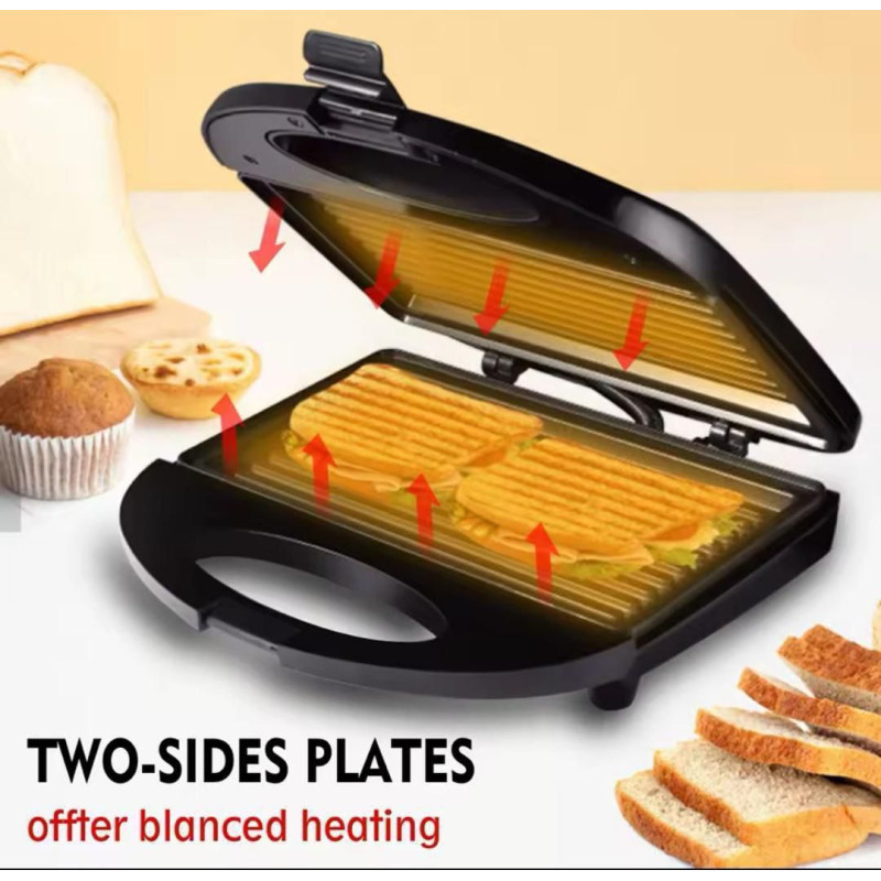 Machine à Croque Monsieur Machine à Sandwich Gaufrier 3 en 1 Grille de Contact 750W Noir