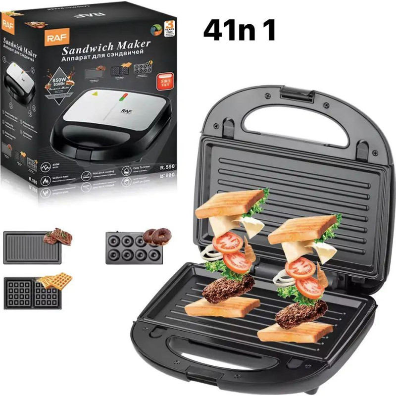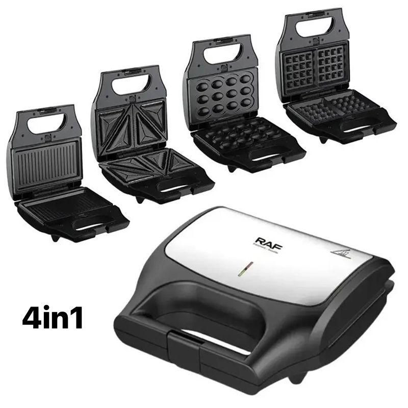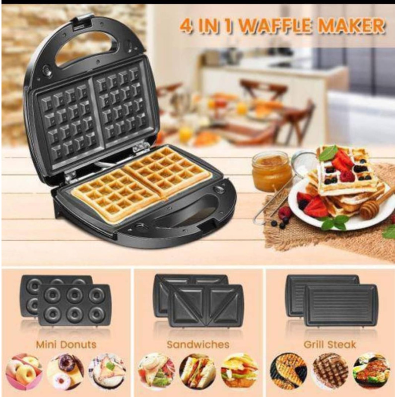 Machine À Sandwich 4 en 1 Gaufrier, 4 Plaques Amovibles Anti-adhésives