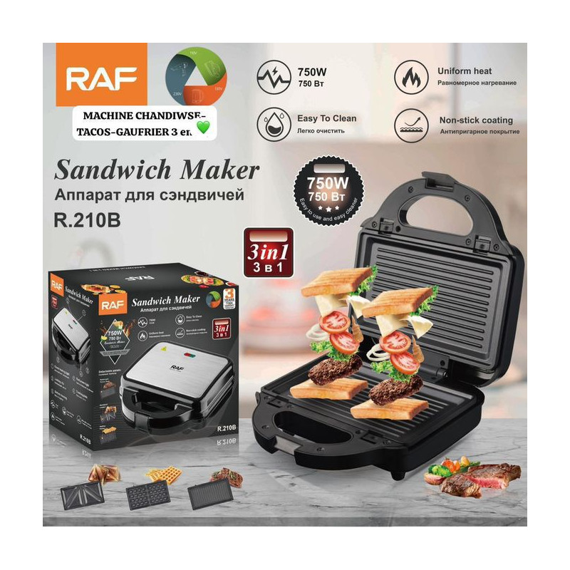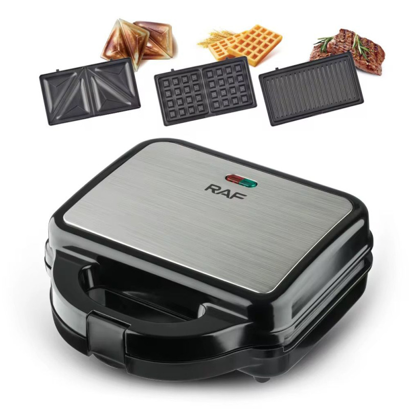 Machine à Croque Monsieur à Sandwich Gaufrier 3 en 1 Grille de Contact 750W Noir
