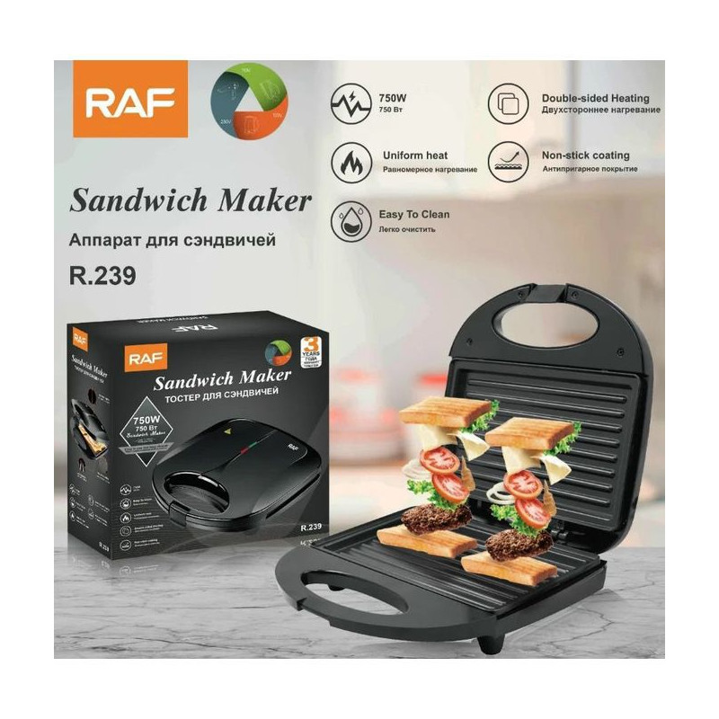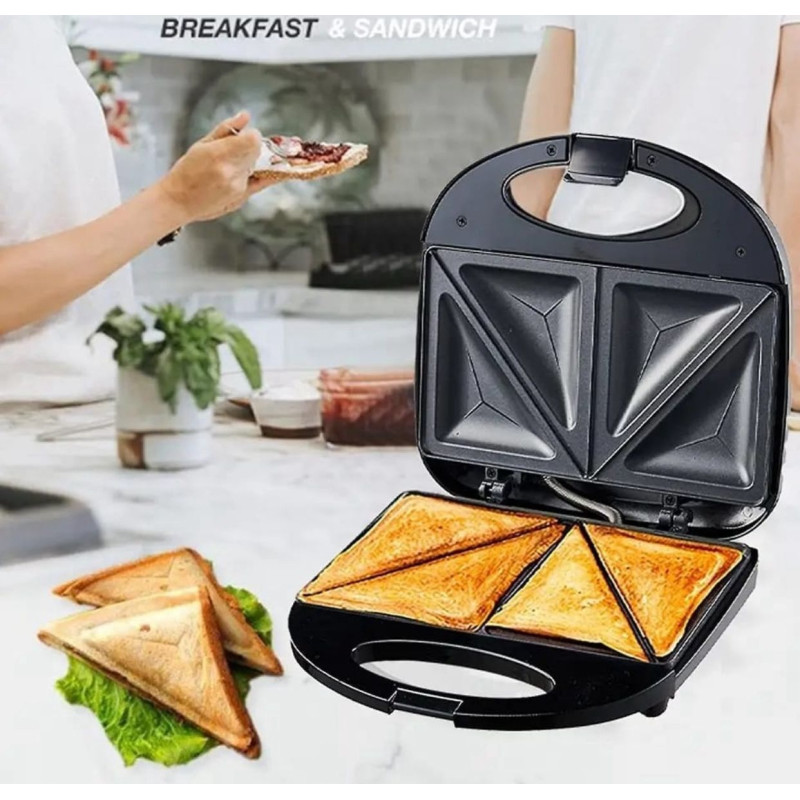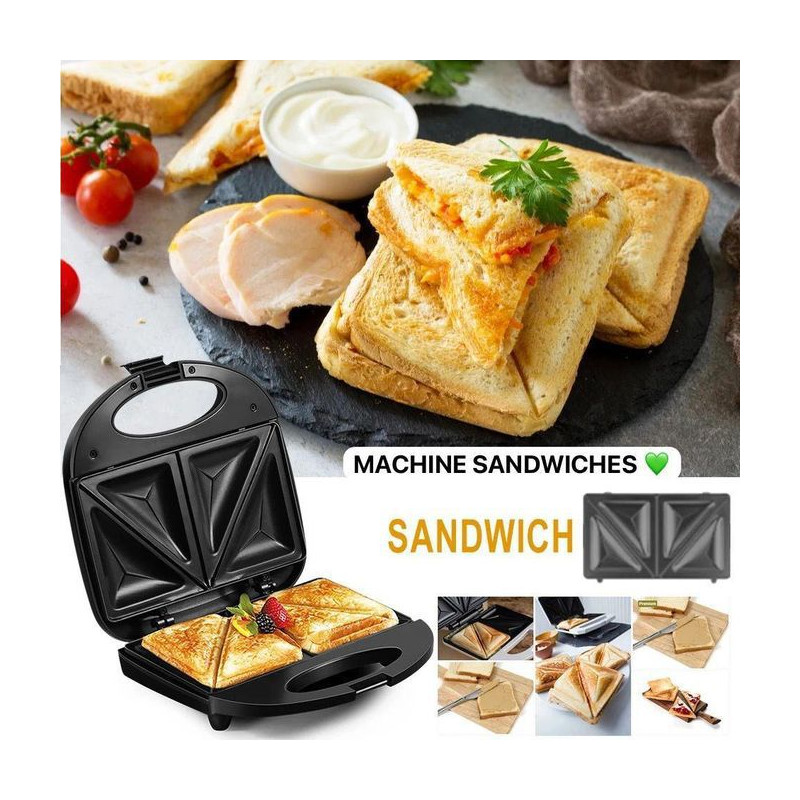 Machine à Croque Monsieur Machine à Sandwich Gaufrier 3 en 1 Grille de Contact 750W Noir