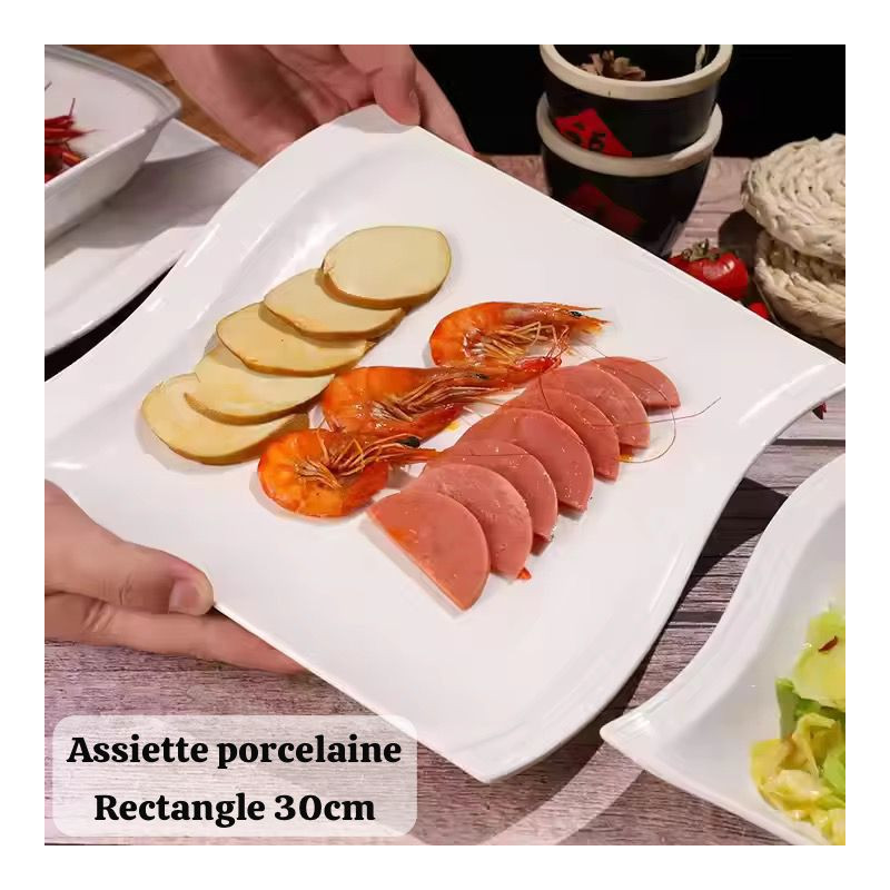 Assiette En Porcelaine - Rectangle 30Cm