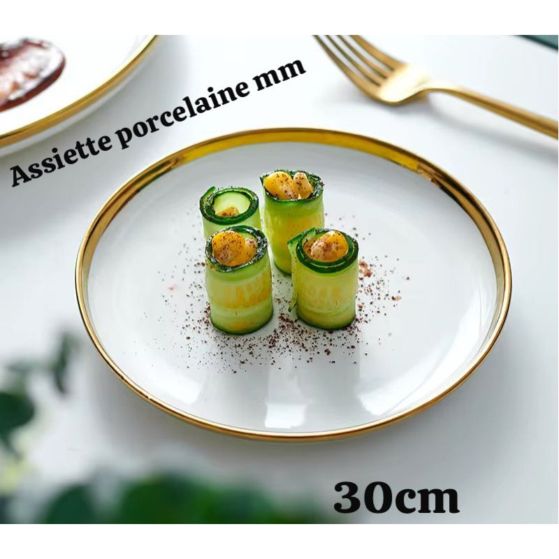 Plateau en Porcelaine Rebord doré 30Cm Moyen Modèle