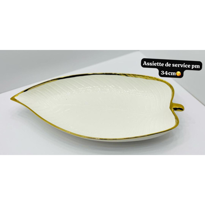 Plateau en Porcelaine Blanc - doré 34CM PM