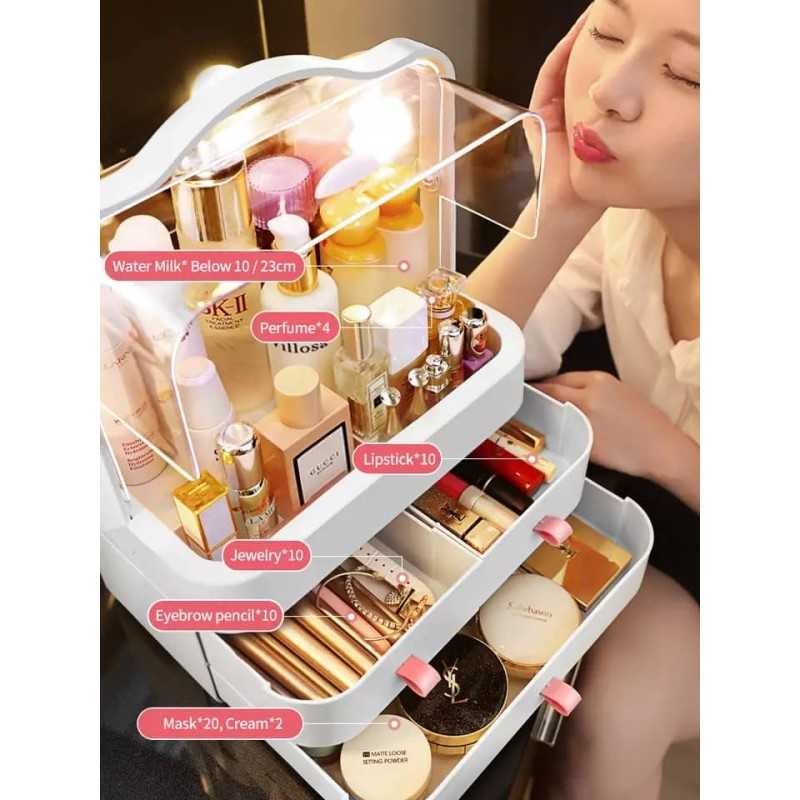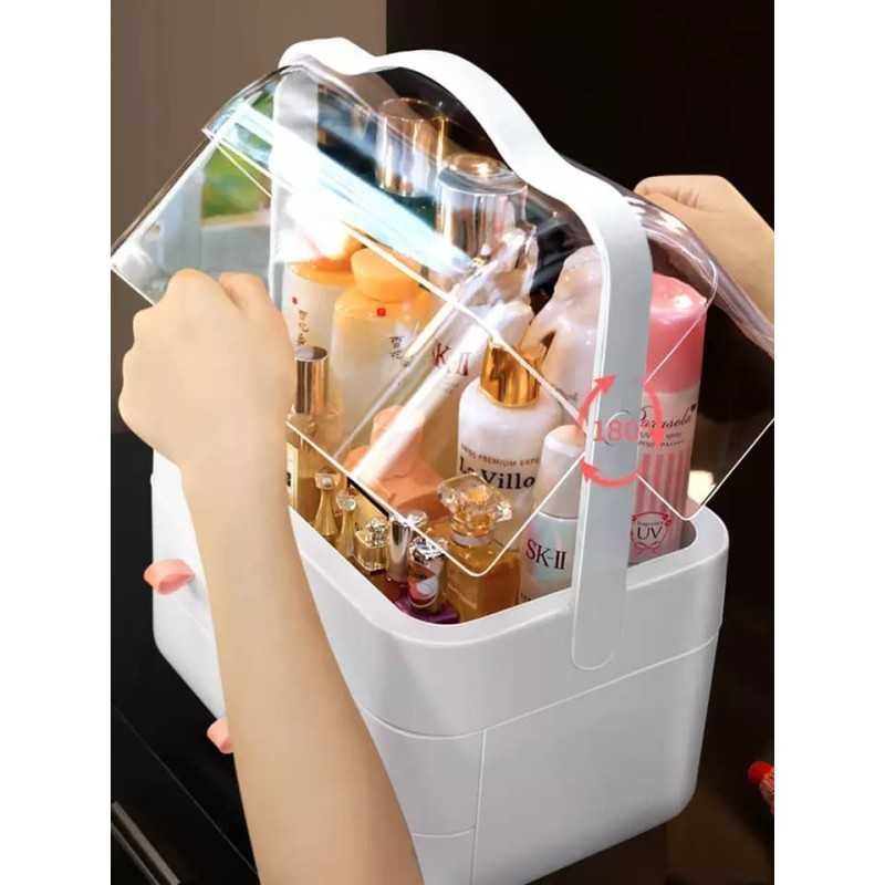Grande boîte de rangement de bijoux, rouge à lèvres, pince de beauté, tiroir de cosmétique, étagère de cosmétique anti-poussière, bureau | organisateur de maquillage