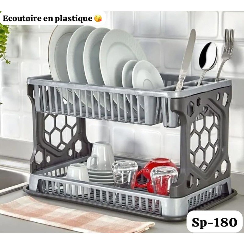 Égouttoir (Range) Pour Vaisselles en Plastique de 2 Compartiments.