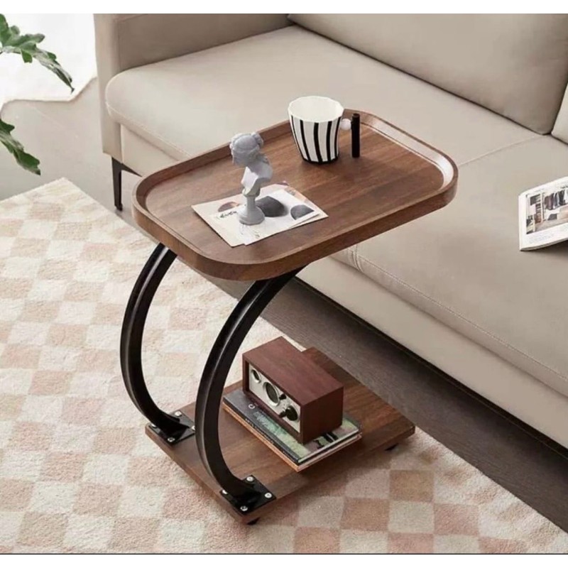 Table d'appoint 2niveaux avec 4roues en forme C