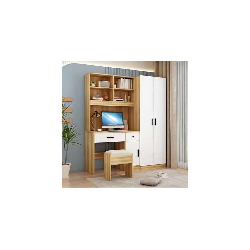 Ensemble 4 en 1 composéde : armoire de 2battants, bureau avec tiroir, bibliothèque et d'une tabouret assorti idéal pour optimiser l'espace.