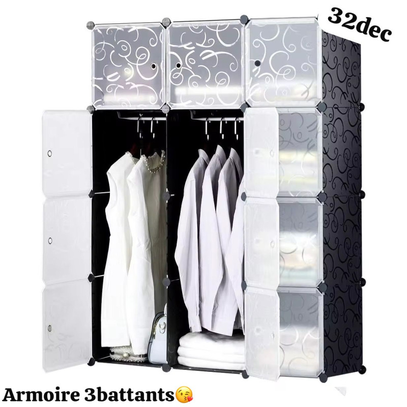 Cette armoire à grande capacité permet de ranger parfaitement les vêtements; chaussures ; jouets et autres accessoires.