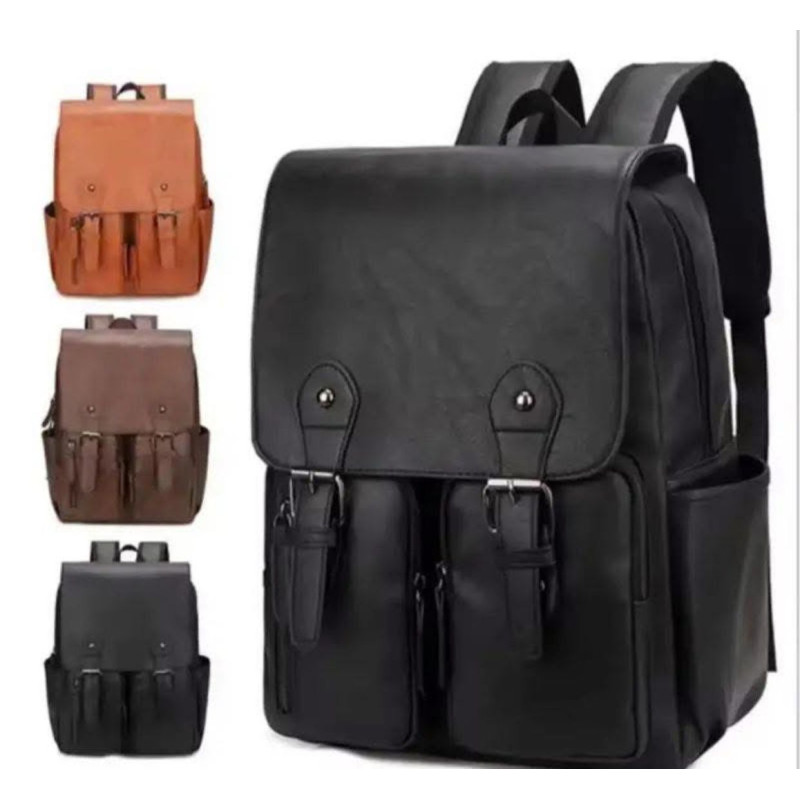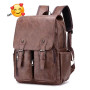 Sac à dos en similicuir avec une fermeture en cordon de serrage sous un rabat en boucles.