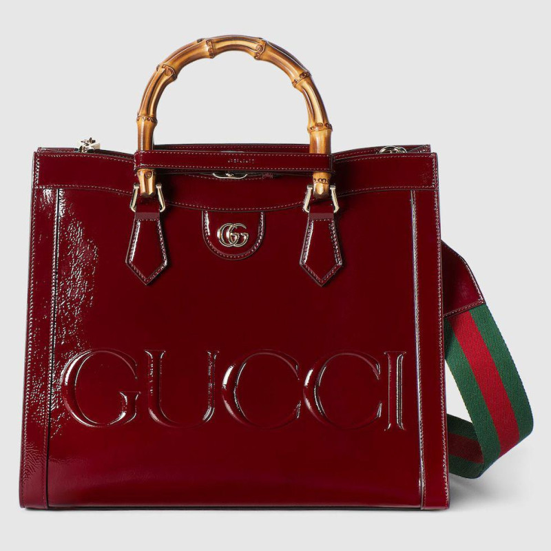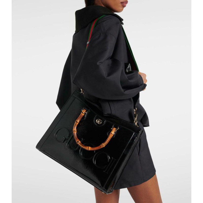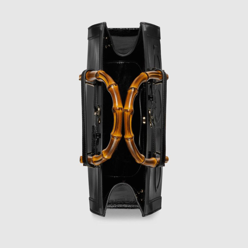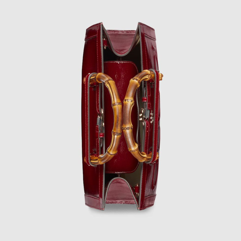 SAC GUCCI EN CUIR VERNI AVEC POIGNÉES EN BAMBOU - 27CM