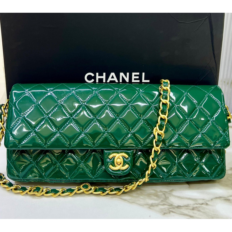 SACOCHE À BANDOULIÈRE EN CHAÎNE - CHANEL EN VERNIS 35CM