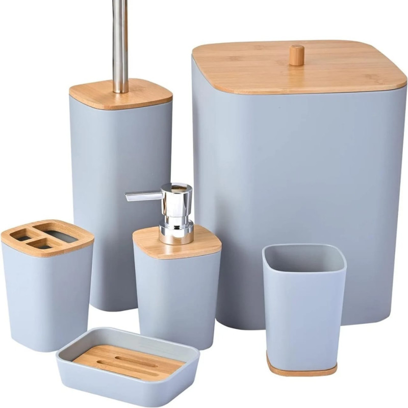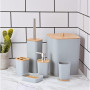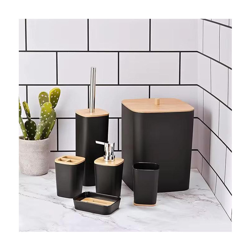 Lot de 6 accessoires de salle de bain en bambou, ensemble d'accessoires de toilette - Poubelle - Porte-brosse à dents.