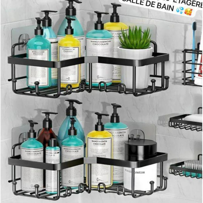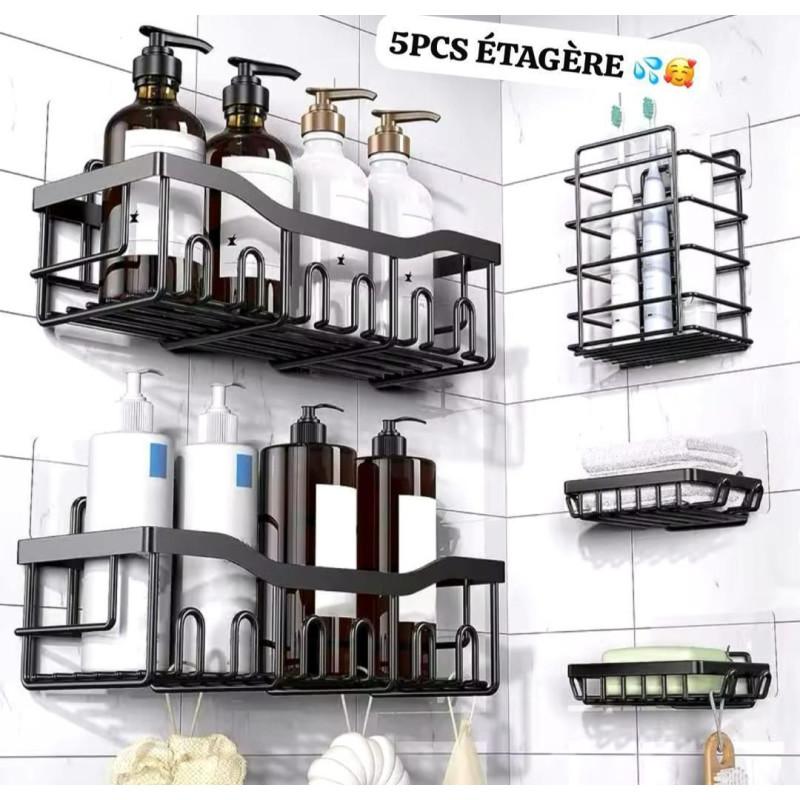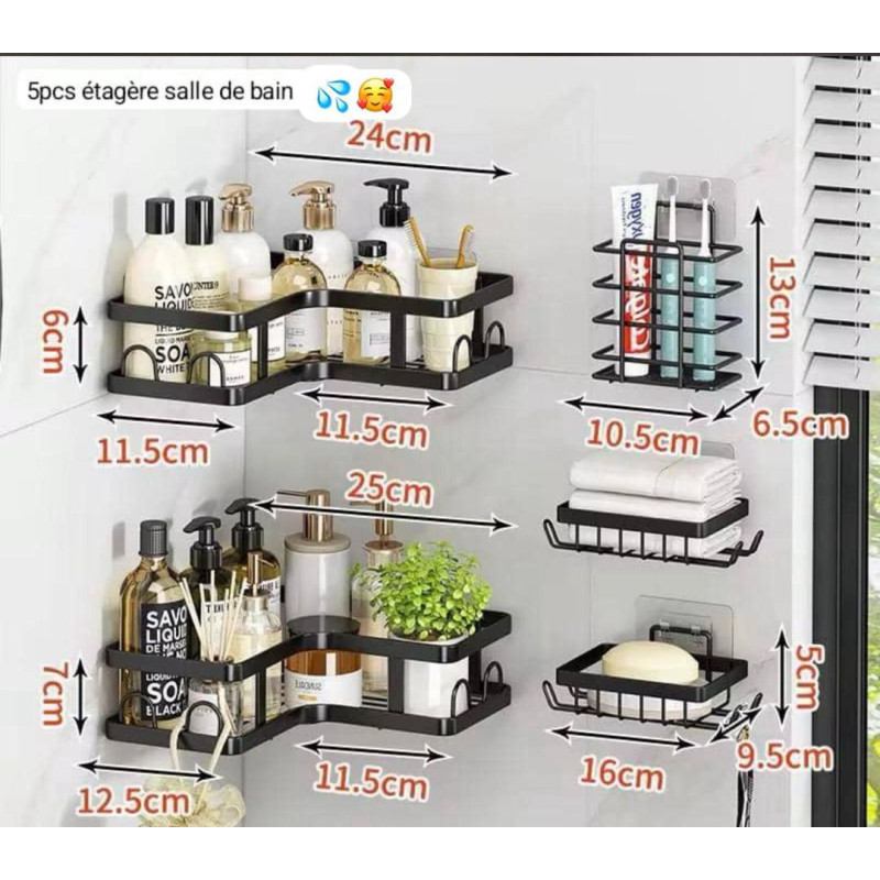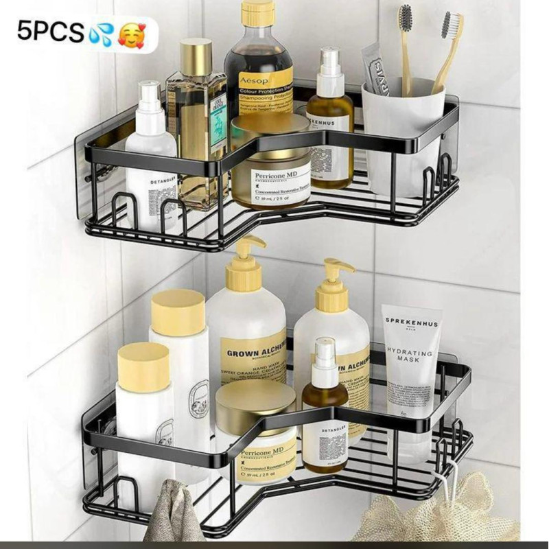 Étagère d'angle salle de bain sans perçage - 5piéces