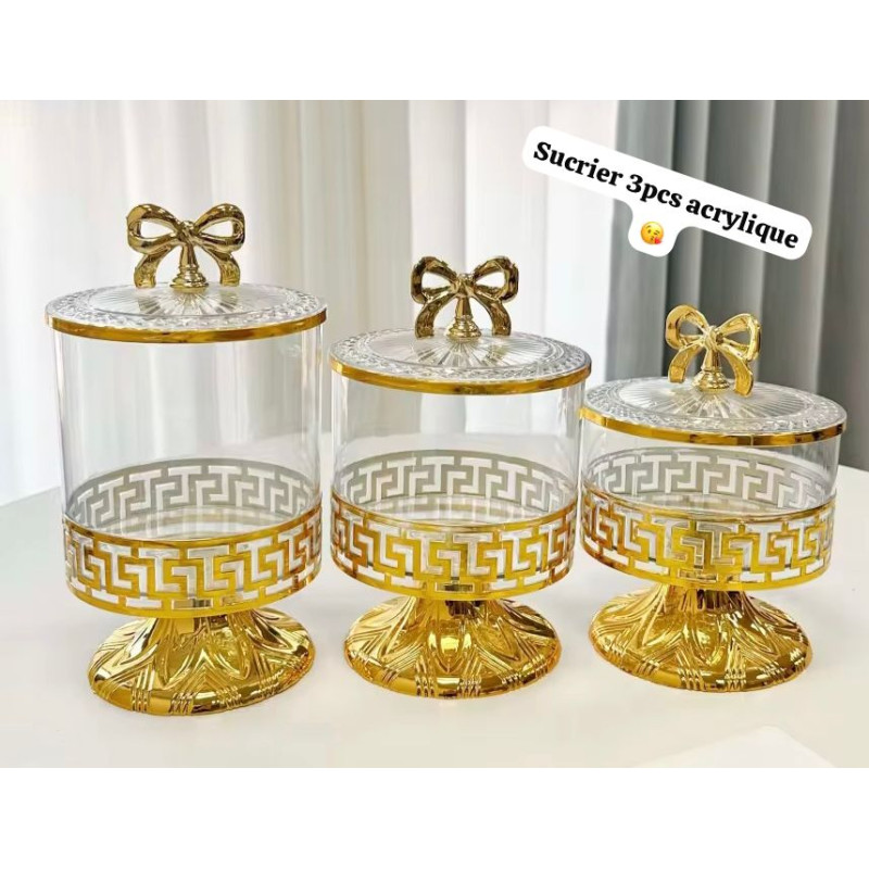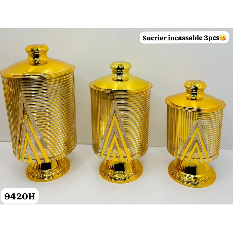 Sucrier - 3 Pièces doré transparent - incassables