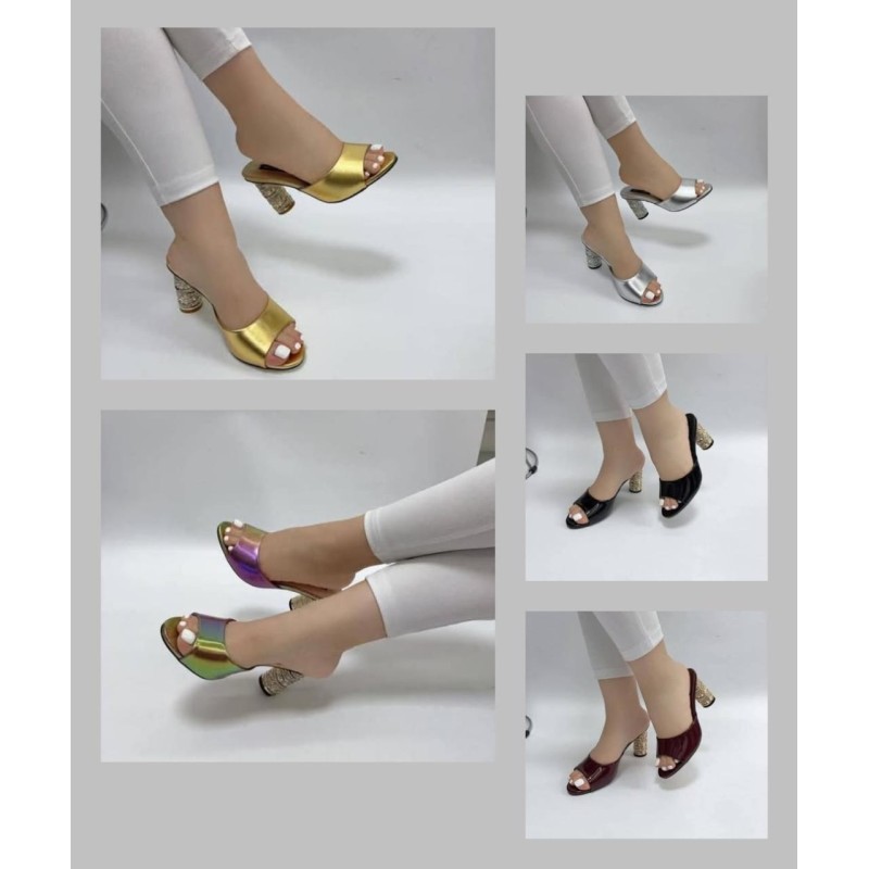 Talon à bout pointu avec des lanières croisées et crochet réglable.