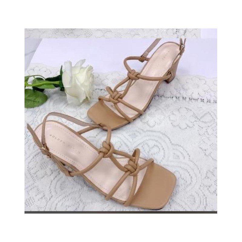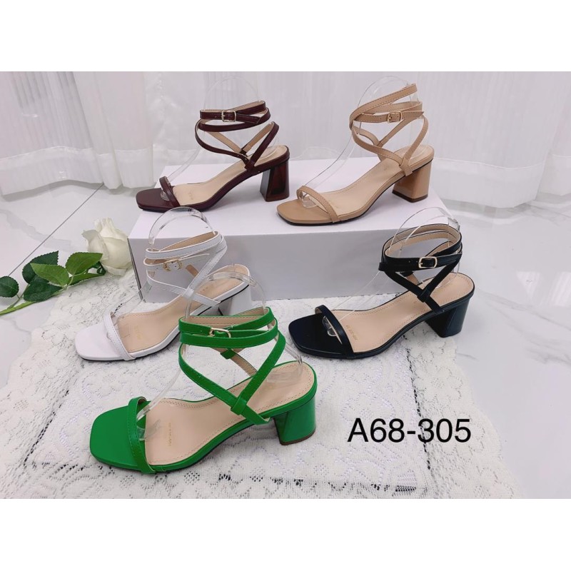 Talon à bout pointu avec des lanières croisées et crochet réglable.