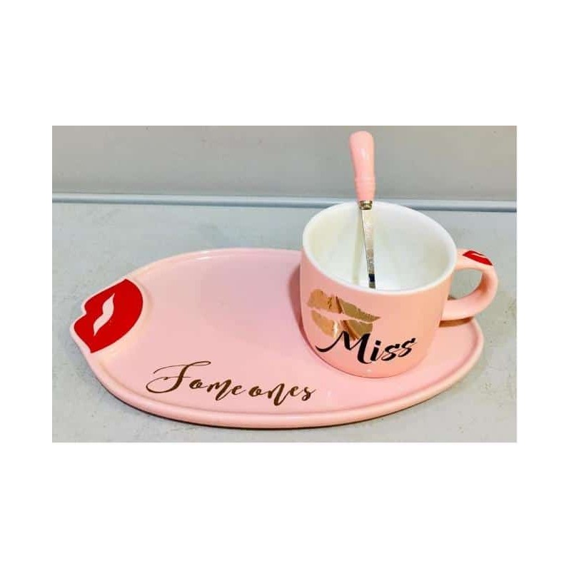 Ensemble de tasse + sous tasse à café avec cuillère petit déjeuner
