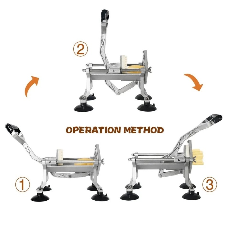Avec poignée ergonomique. Coupez les frites 10 fois plus vite qu'à la main.