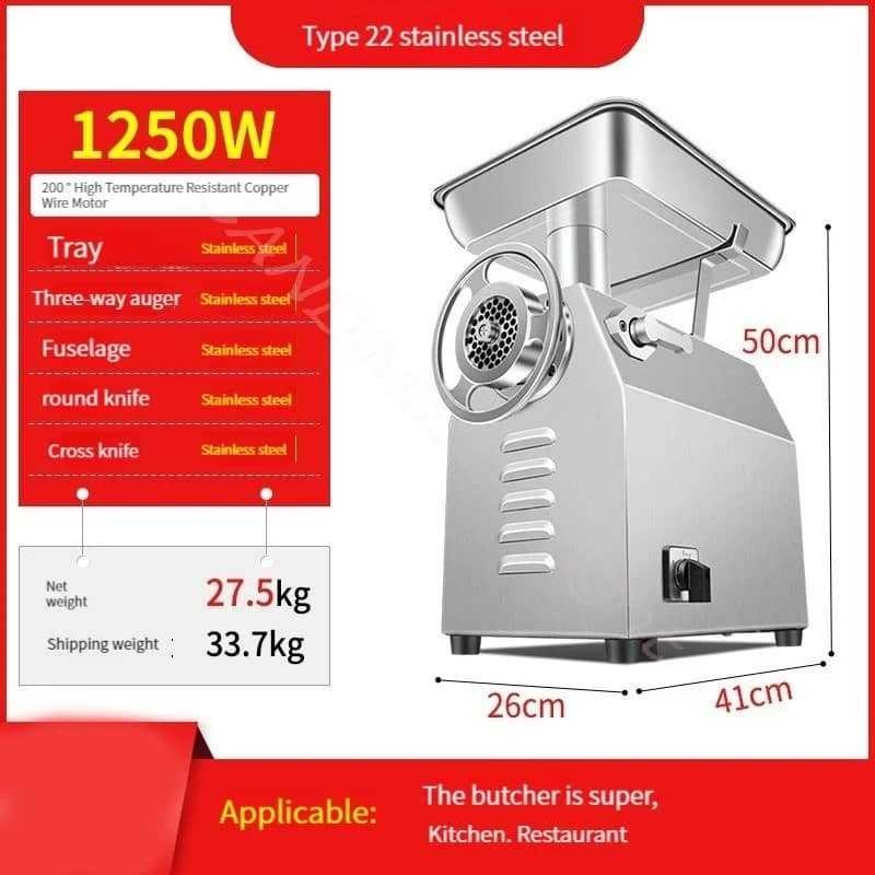 Hachoir à viande - Électrique - Acier inoxydable - Capacité jusqu'à 150 kg - Efficace - Moteur haute performance.