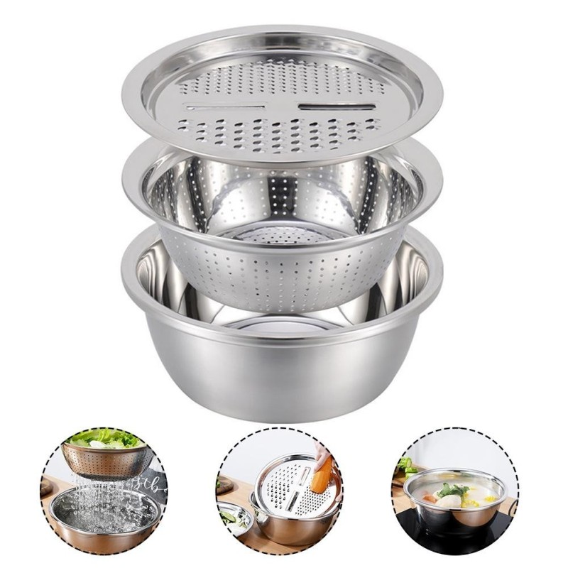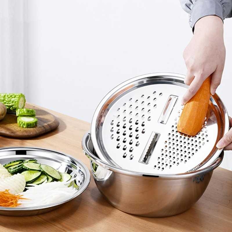Coupe-légumes 3 en 1 avec égouttoir, plateau en acier inoxydable