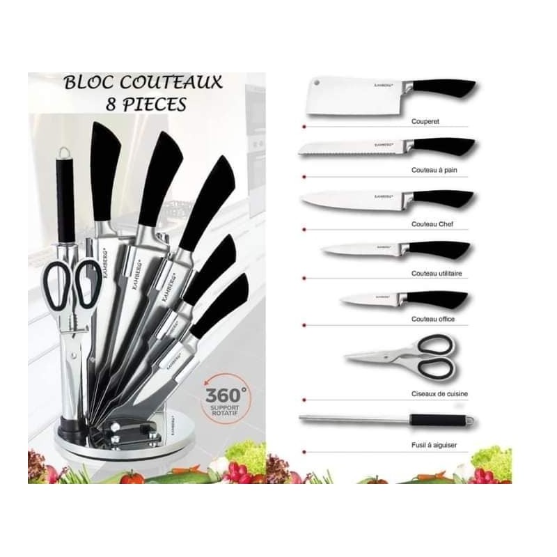Ensemble Couteaux en Acier Inoxydable avec Support Rotatif 360° 8 Pièces SY-L116