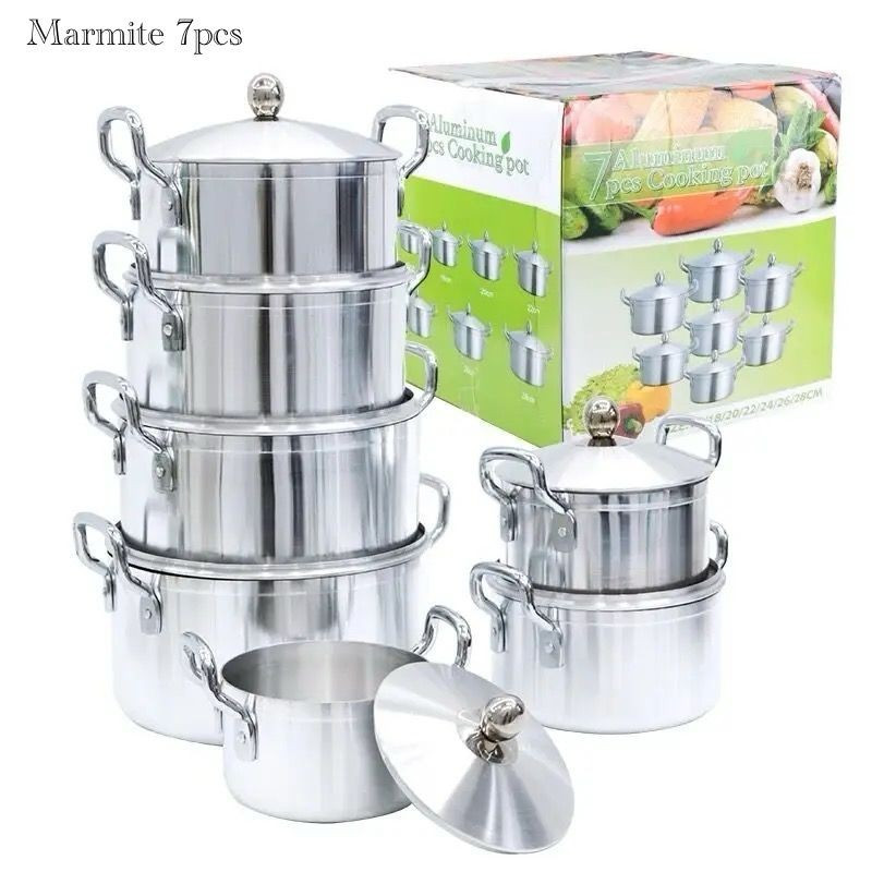 Ensemble Marmites En Aluminium- 7 Pièces - Argent - Grande Taille