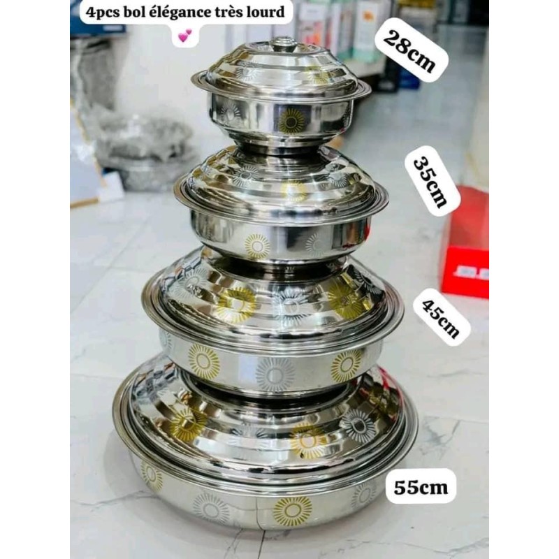 Set De 4 Bols Avec Couvercle Très Lourds De 28,35,45 et 55Cm En Inox Avec Déco