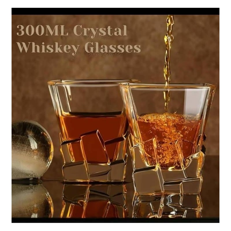 Ensemble 8piéces : 1 Carafe de luxe + 6 pièces + 1 plateau doré