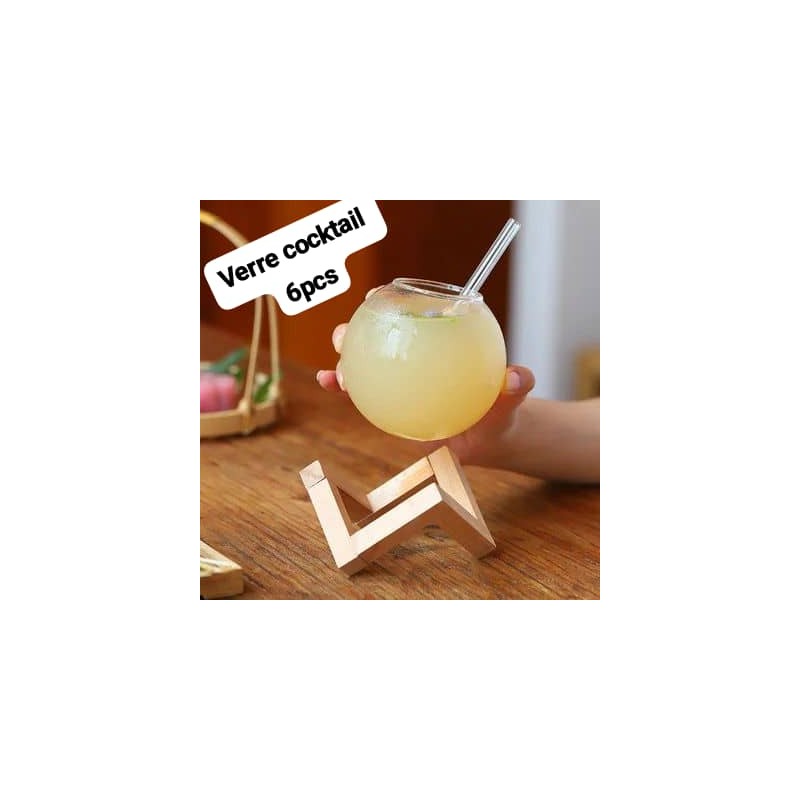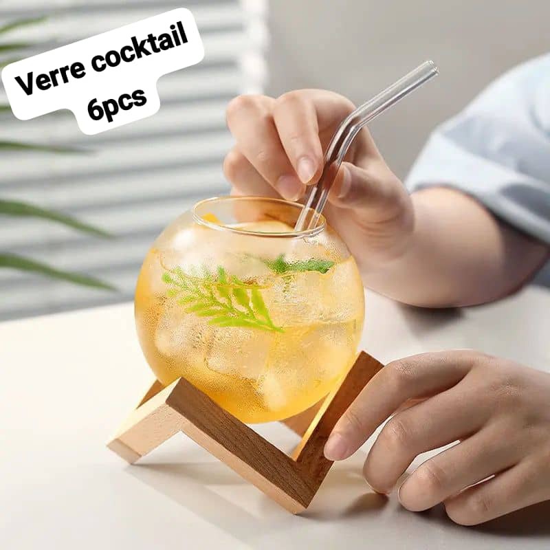 Tasse en verre à cocktail avec support en bois, verre de bar créatif, tasse à clicks, boule ronde, gobelet à jus de fruits.