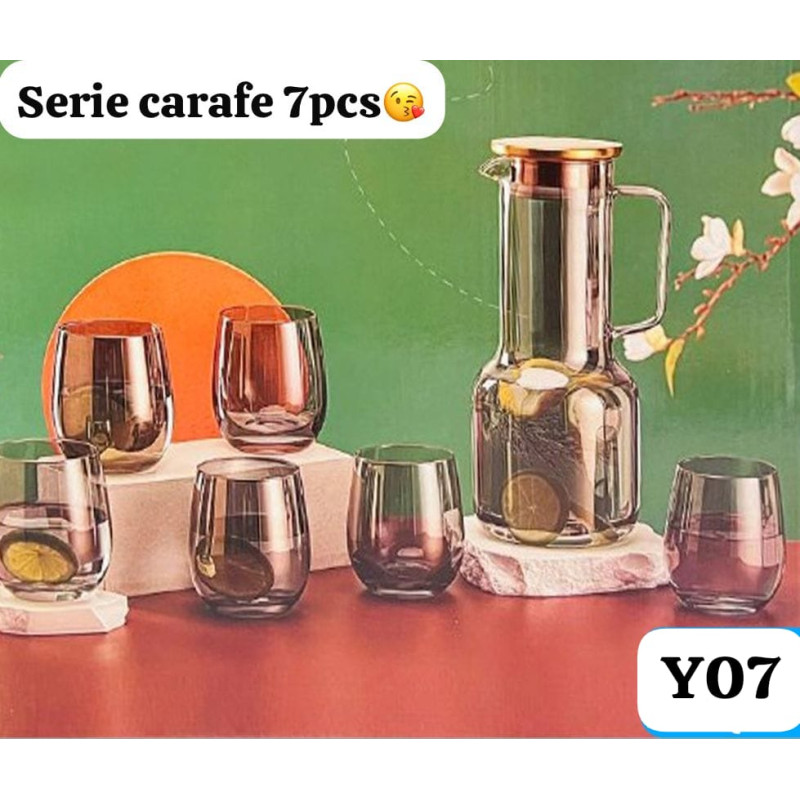 Ensemble de 7pièces Carafe avec 6tasses en verre à eau, boisson, jus etc
