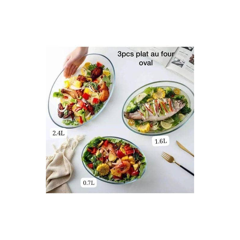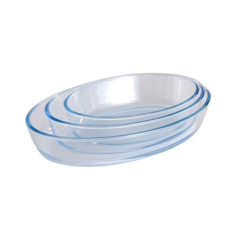 Set de 3 Articles de cuisson en verre trempé ovale.