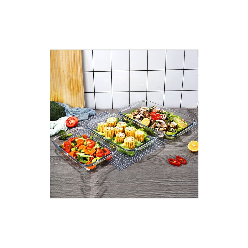Set de 3 Articles de cuisson en verre trempé rectangle